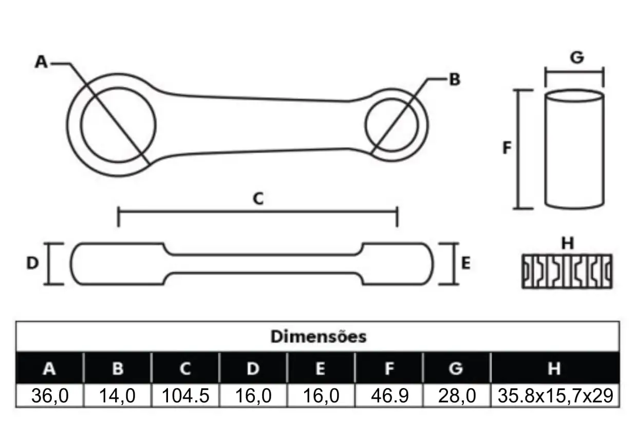BIELA COMPLETA - TITAN 160 / FAN 160 / NXR 160 BROS 16... / XRE 190