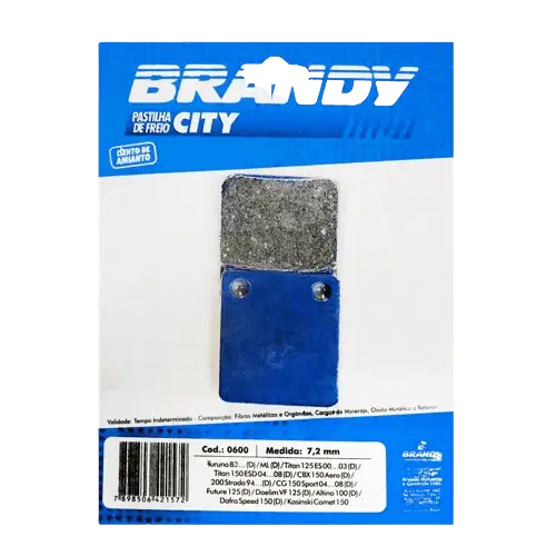 PASTILHA FREIO CITY 7,2MM - TURUNA 83... (D) / ML (D) / TITAN 125 ES 00...03 (D) / TITAN 150 ESD 04...08 (D)