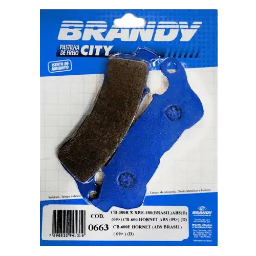 PASTILHA FREIO CITY 8,0MM - CB 300R C/ ABS 09... (D) / XRE 300 C/ABS 09... (D)
