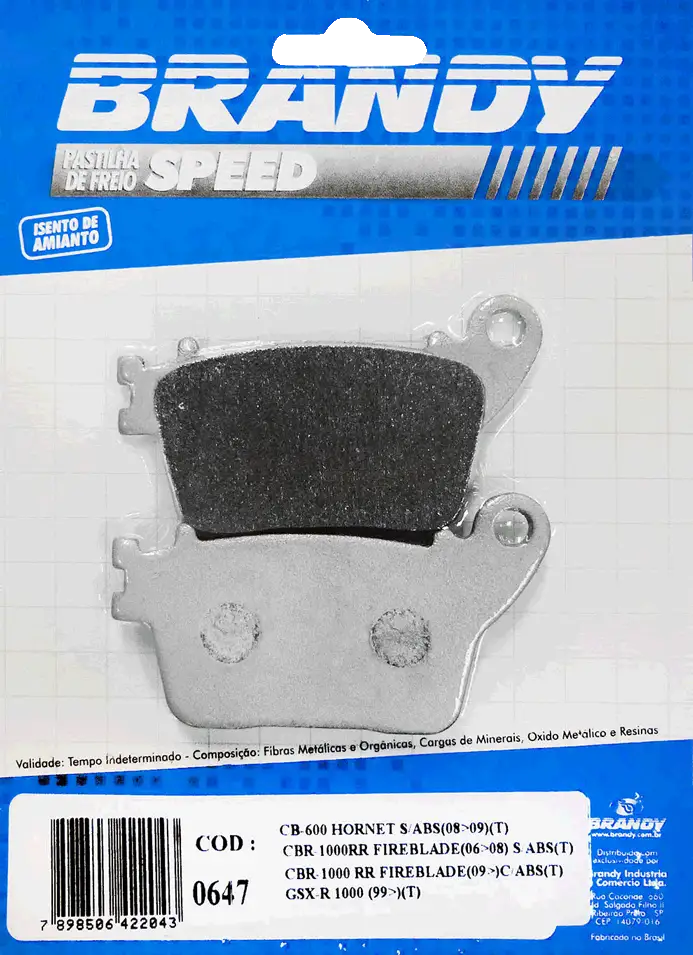 PASTILHA FREIO SPEED 9,0MM - CB 600 HORNET S/ ABS 08...09(T) / CBR 1000 RR FIREBLADE 06...08 S/ABS(T)